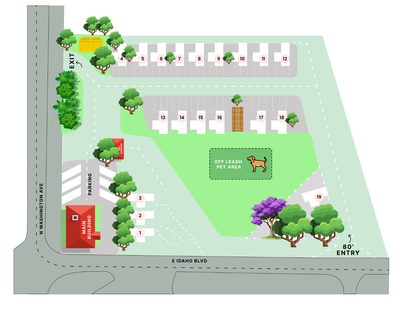 If you are arriving outside our regular business hours, we want to make sure your check-in is simple and stress-free. Upon arrival, you’ll find an envelope with your name and reserved plot details posted on the window of the Registration Building. This will guide you directly to your site so you can settle in right away, even if the office is closed. The next morning, please stop by the Office to complete the check-in process, meet our friendly staff, and pick up any additional information about park amenities, activities, or local attractions.